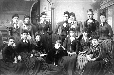 ![]() Winnie Tyler and her classmates, normal school, Wadsworth, Ohio. My grandmother is the young lady seated, third from left in striped dress. |