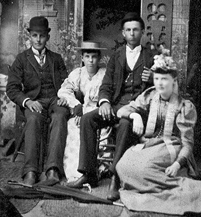 ![]() My grandfather R.D. Wall (dark suit) and grandmother Winifred Tyler (far right). This photo is probably from about 1895 before they were married |