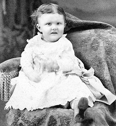 ![]() Winifred Pearl Tyler 1876-1958 - the two front teeth usually come in between the age of nine months and one year of age. This picture must have been taken in 1877, perhaps on the occasion of her first birthday. |