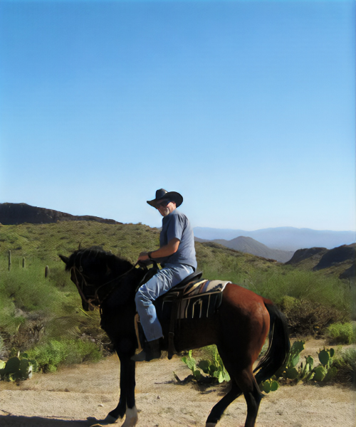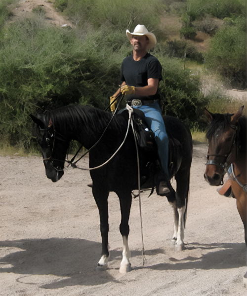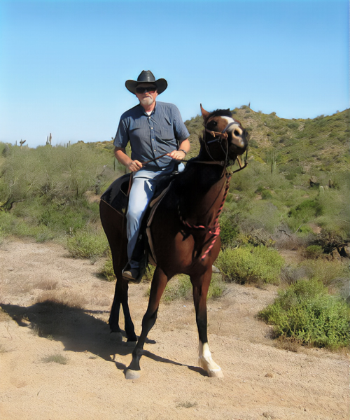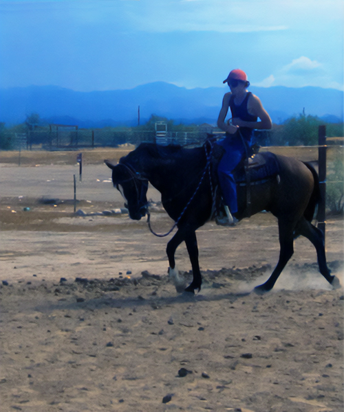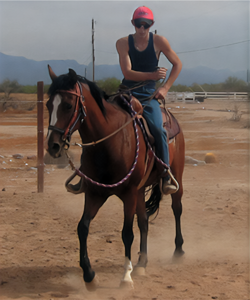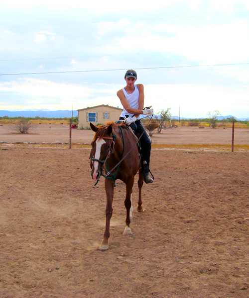 July 2010, Michael Wall riding Mocha in my paddock, Andy Perry Drive, Florence, Arizona |