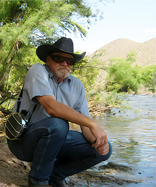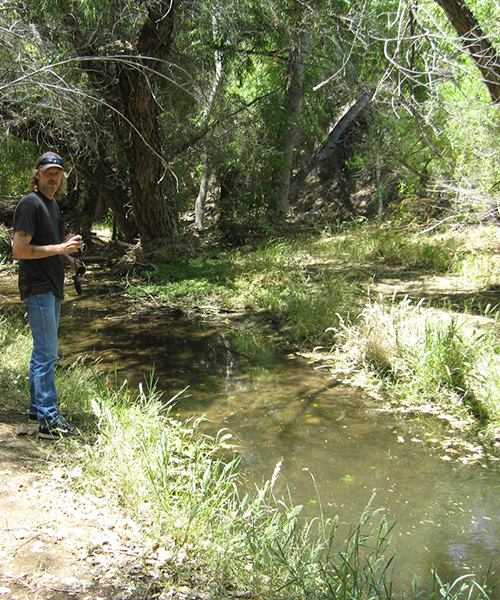 June 17, 2012, Bruce on the banks of tiny Queen Creek near the Boyce Thompson Arboretum south of US 60, three miles west of Superior, Arizona |