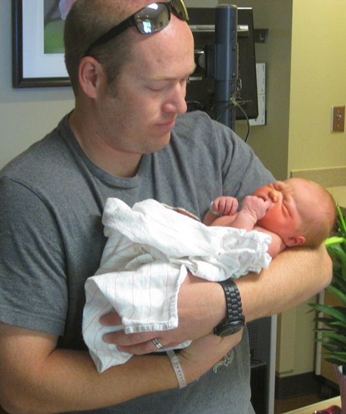 April 12, 2012, proud daddy Cody and newly arrived daughter Claire Marie Young, courtesey of mom Heather (Wall) Young |
