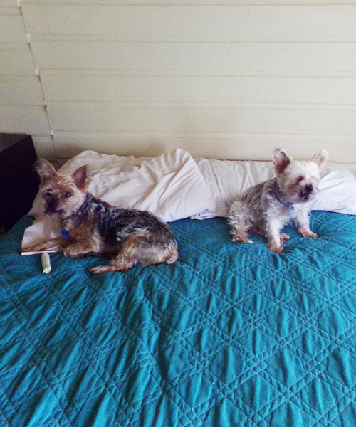 May 1, 2016, Bucky and Precious making adjustment to our new home by taking a nap in my bedroom |