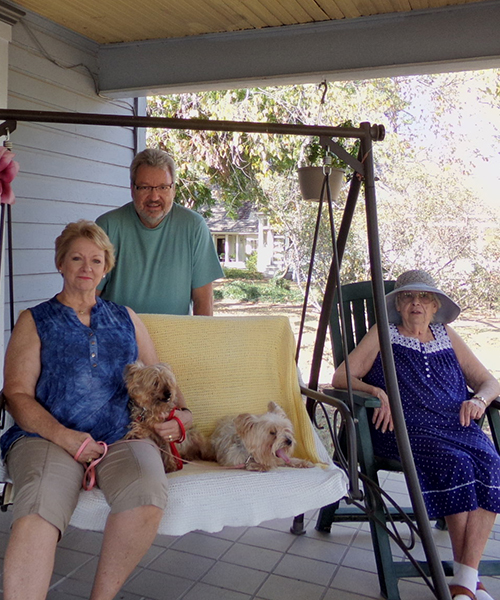 August 22, 2016, brother Mike and sister-in-law Diane White enjoying nice warm weather on our front porch |