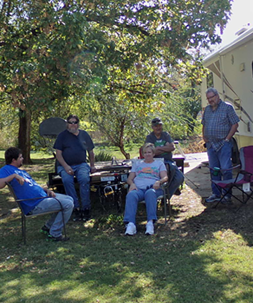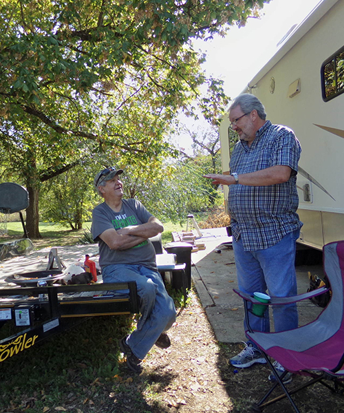 August 23, 2016, Chouteau, Oklahoma, Mike and Gerry by Uncle Gerry's home on wheels |