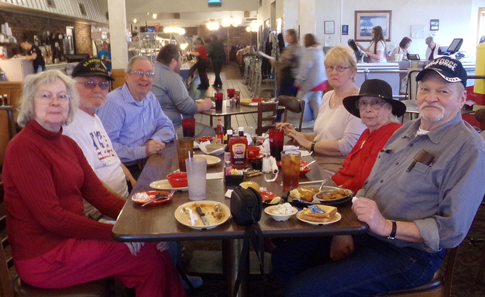 March 9, 2018, Art and Denise came from Arizona to visit us, this evening we went to Western Sizzler in Van Buren; left to right: Aunt Elinor (Corbett) Stockton and companion Mike, Art, Denise, Sue and me |