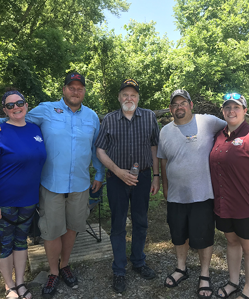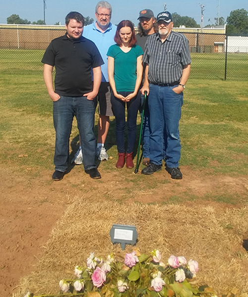 August 5, 2018, Dan, Mike, Ashley, Bruce and me at Sue's grave in the Fort Smith National Cemetery |