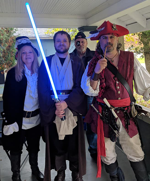 Halloween mixed metaphors, Pirates and Jedi, Tonya, Daniel, software pirate, and Joey, Leavittsburg |