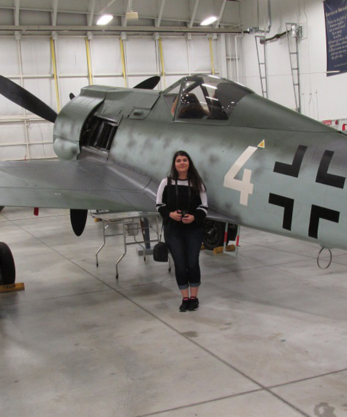 June 8, 2019, Jolie and a WWII German Focke-Wulf FW-190 at the Tri-Sate War Bird Museum, Clermont County, Airport, Batavia, Ohio |