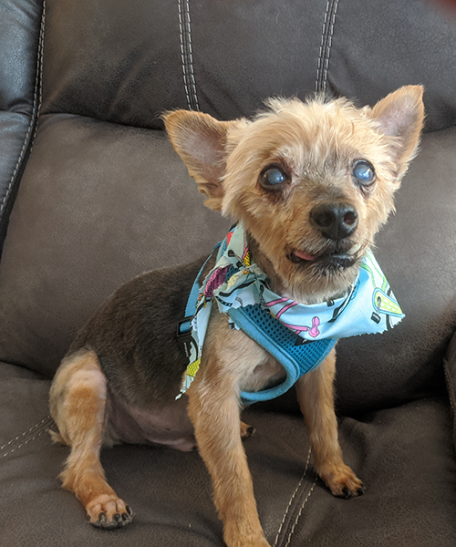 My Yorkie buddy Bucky died on February 24, 2021; that same day Mike and Diane took me to an animal shelter in Batavia, Ohio to find a new companion and I found Samsara (Sara), who was a new resident of the shelter |