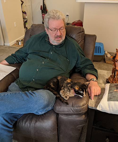 Bucky, August 5, 2020, my apartment in Alexandria, Kentucky. Precious died at age 14 and that same day I took the last photo I have of Bucky. He turned 14 in December 2020 and died on February 24, 2021. He had what we thought were cataracts, but turned out to be something more serious. |