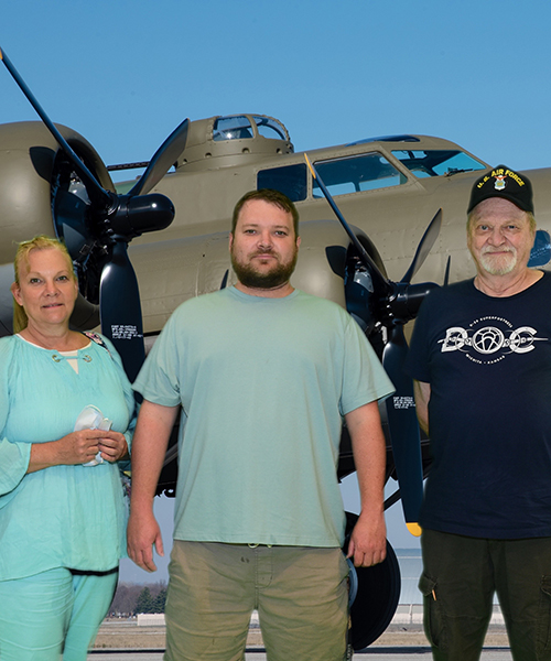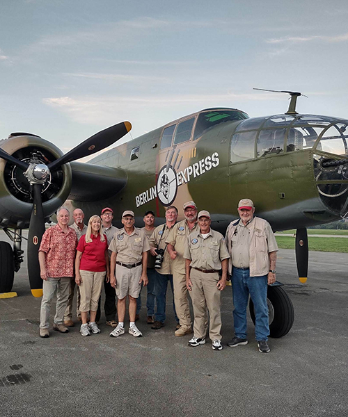 September 6, 2021, the Cincinnati Warbirds and B-25 Berlin Express; L->R, Tom Popp, Marina Greenwald, Kevin Gasset, Jim Owens, Mike White, Bob Burkhardt, |