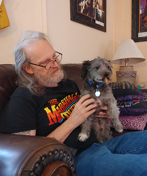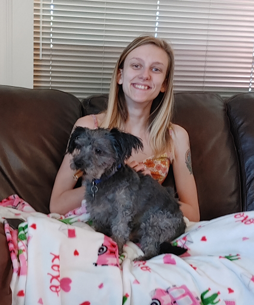 May 8, 2022 granddaughter Nichole Wall and Tucker; Nichole came down to Mesa from her home in Sacramento, California to see me and her dad |