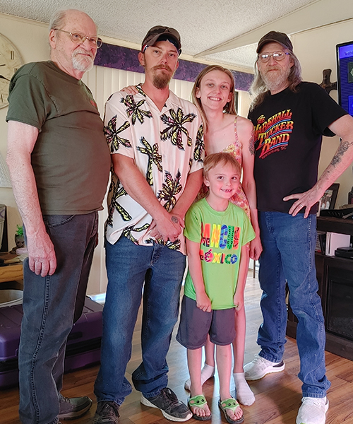 May 8, 2022 Bruce's home, 8600 E. Broadway unit 35, Mesa, Arizona: me, grandson Mike, granddaughter Nichole, great-grandson Stone, Bruce |