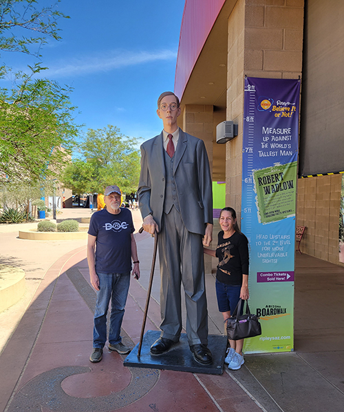 May 11, 2022, Arizona Boardwalk, Scottsdale, with daughter-in-law Terri (Davis) Wall with the life sized statue of world's tallest man, Robert Wadlow (1918-1940), 8'11" 439 lbs |