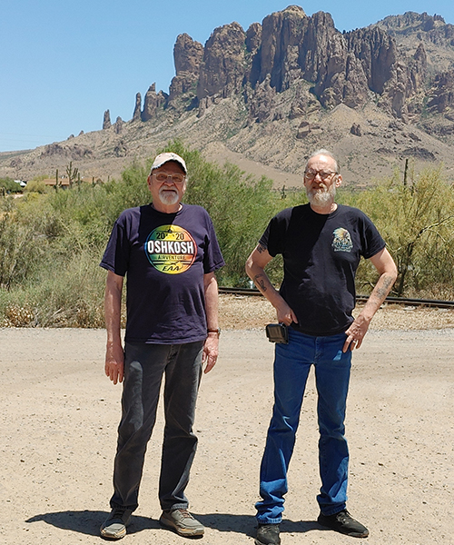 May 12, 2022, father and son, Apache Junction, Arizona with the western face of Superstition Mountain as a backdrop |