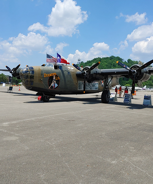 June 20, 2022 Lunken Air Port, Cincinnati, Ohio - Cincinnati Warbirds president Jim Stitt as the Texas Commemorative Air Force (CAF) "Diamond Lil" B-24 taxis into the ramp |