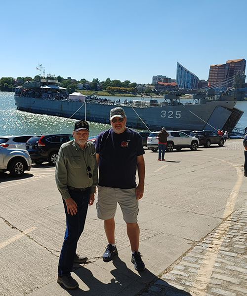 September 30, 2022, Cincinnati: Mike and I visiting the restored WWII LST-325 brought back to the U.S. from Greece by a private organization |