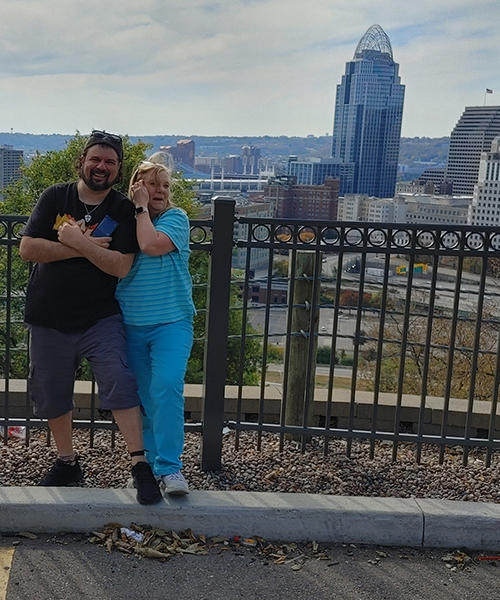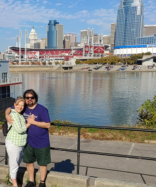 October 23, 2022, Newport, Kentucky, Tonya and Joey and Cincinnati Reds ball park in the background |