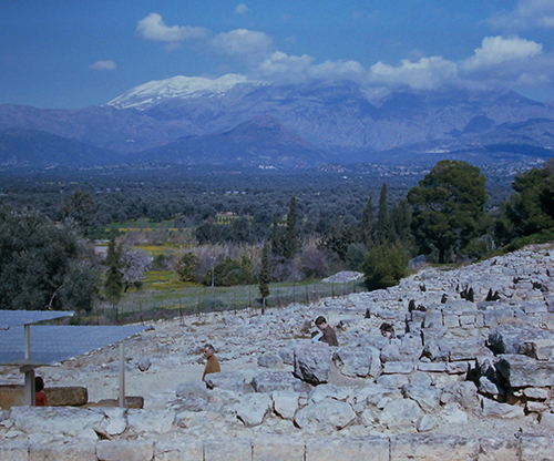 Minoan ruins at Agia Triada with snow covered Mt. Ida, Crete's tallest moutain. Agia Triada is 32 miles west of the city of Heraklion (Irakleon); the first stop on a tour I took in January 1977 |