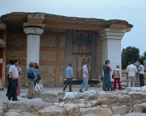 The large earthen jugs were used by the Minoans to store grain, oil and water. Many tourists from Europe visited while I was stationed on Crete, and still do. |