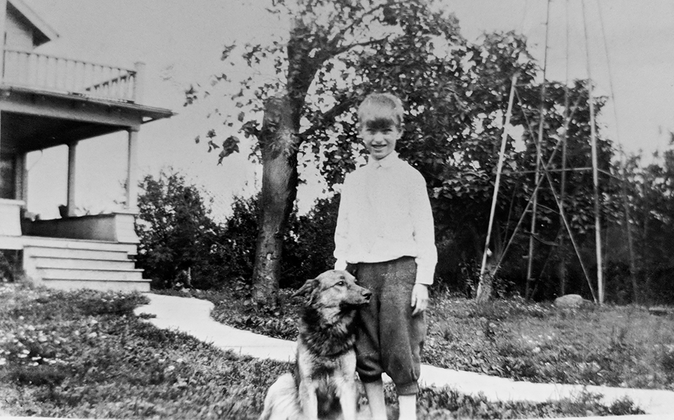 My dad, Vivian Arlie Wall (1921-1946) and his dog about 1933, the Wall farm, Sharon Center, Ohio |
