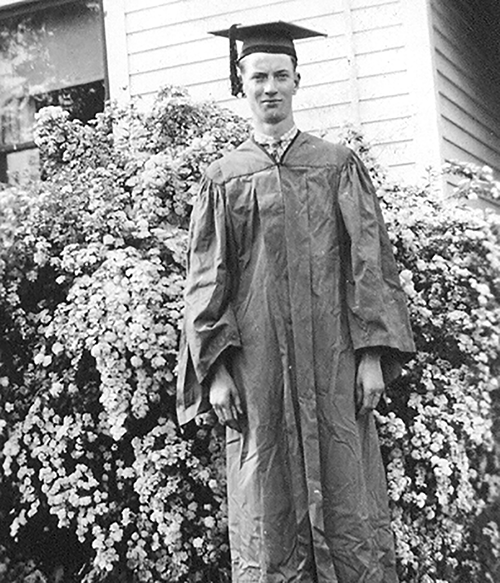 Dad's graduation photo, June 1939 - this photo was taken in front of my grandfather's (Reason D. Wall) farm house. |