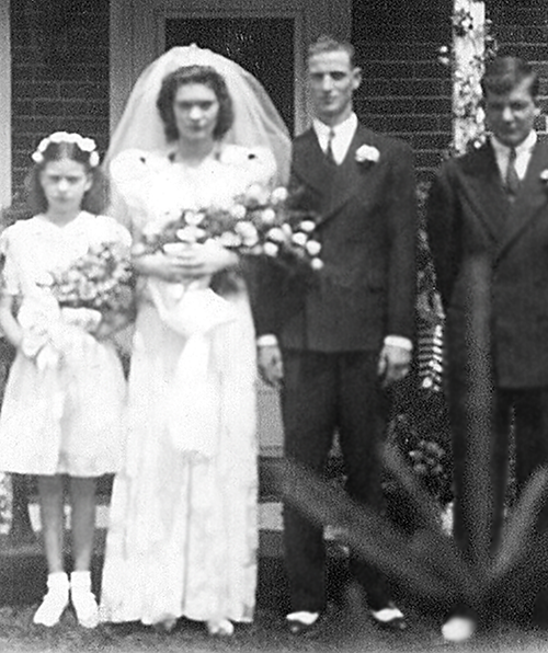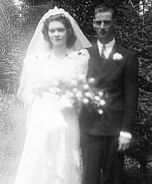 My parents, Clara and Vivian Wall, June 14, 1941, The wedding was held in the front yard of my great-grandmother, Luvenia (Trowbridge) Westfall in Copley, Ohio. |