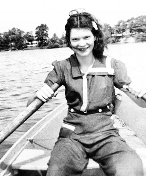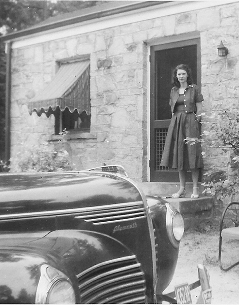 Mom, Clara Luvenia Wall, on Mom and Dad's honeymoon near Niagra Falls. Dad's black 1940 Plymouth in the foreground.
